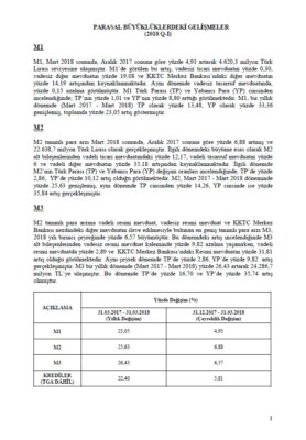 Para arzı raporu: Parasal büyüklüklerdeki gelişmeler (2018-I)