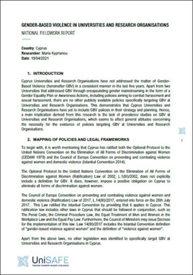 Gender-based violence in universities and research organisations: National fieldwork report