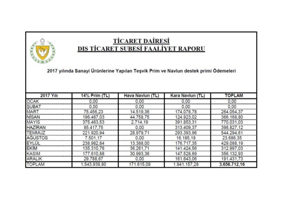 2017 yılı sanayi ürünlerine verilen teşvik primleri ve navlun destekleri