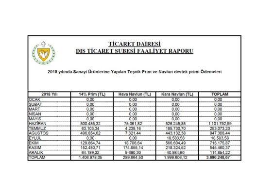 2018 yılı sanayi ürünlerine verilen teşvik primleri ve navlun destekleri