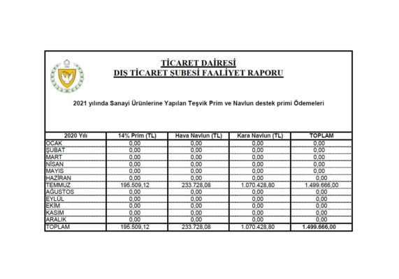 2021 yılı sanayi ürünlerine verilen teşvik primleri ve navlun destekleri