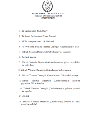 Kuzey Kıbrıs Türk Cumhuriyeti Yüksek Yönetim Denetçisi (Ombudsman)