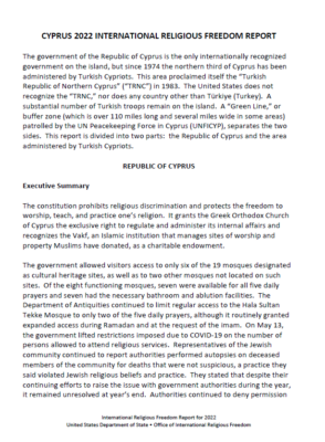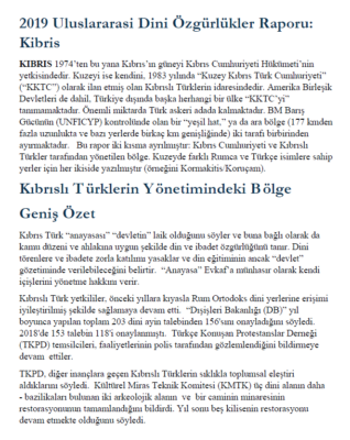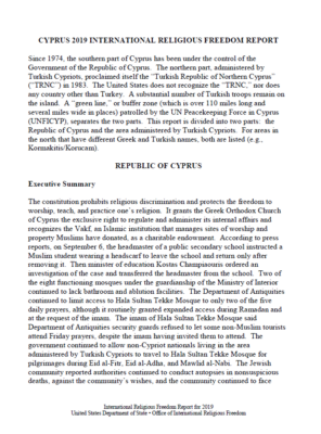 2019 Uluslararası Dini Özgürlükler Raporu: Kıbrıs