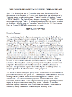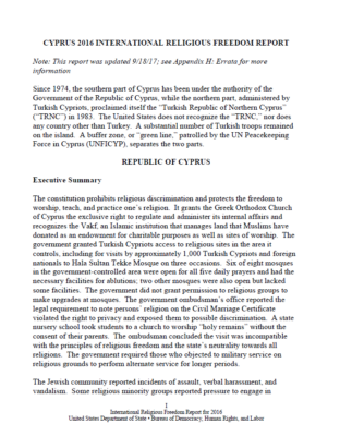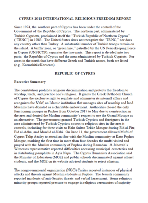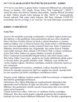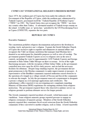 2017 Uluslararası Dini Özgürlükler Raporu: Kıbrıs