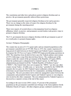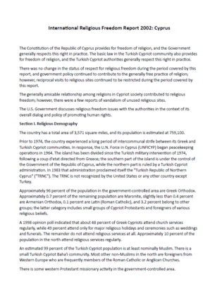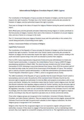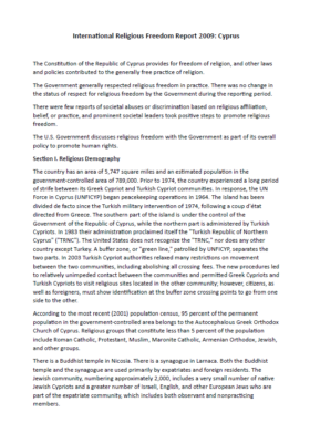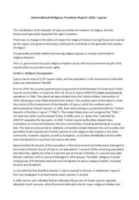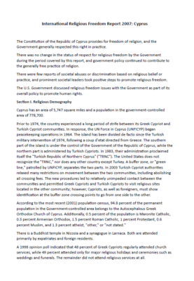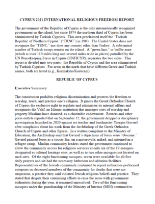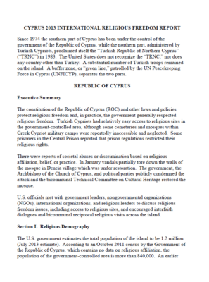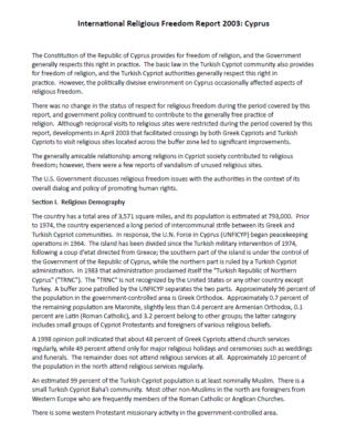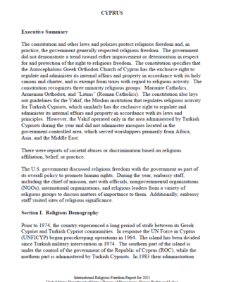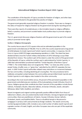 International Religious Freedom Report for 2010: Cyprus (July-December)