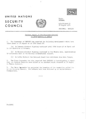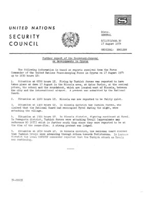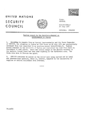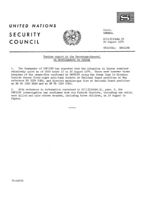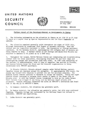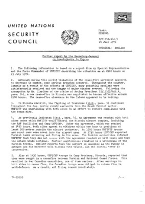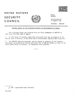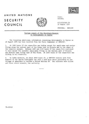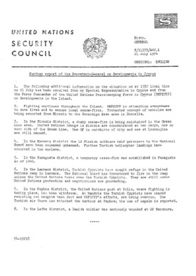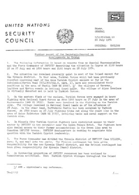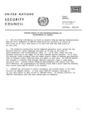 Further report of the Secretary-General pursuant to Security Council resolution 361 (1974)