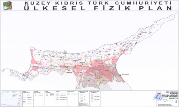 Kuzey Kıbrıs Türk Cumhuriyeti Ülkesel Fizik Plan: Risk ve sorun alanları (Birleşik+Jeolojik açıdan problemli bölgeler)
