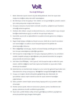 Volt Kıbrıs Kuruluş Bildirgesi