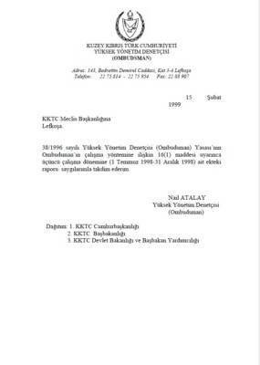 Yüksek Yönetim Denetçisi (Ombudsman)’ın Temmuz-Aralık 1998 Raporu