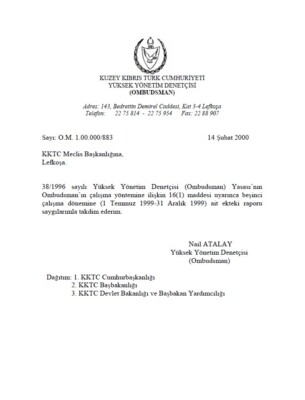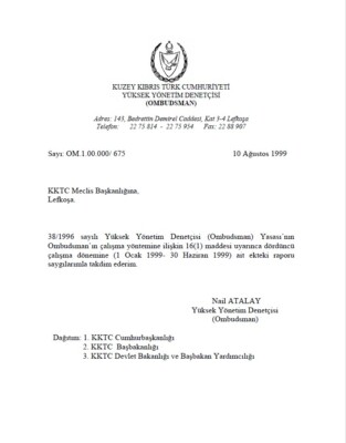 Yüksek Yönetim Denetçisi (Ombudsman)’ın Temmuz-Aralık 1999 Raporu