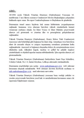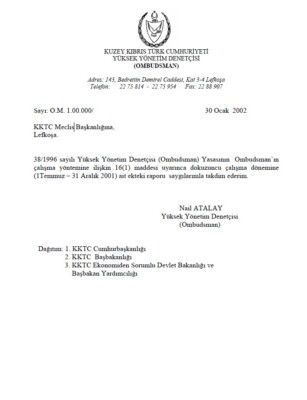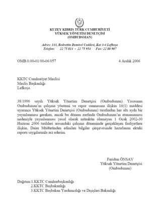 Yüksek Yönetim Denetçisi (Ombudsman) 1 Ocak 2002-30 Haziran 2006 Dönemi Raporu