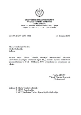 Yüksek Yönetim Denetçisi (Ombudsman) Ocak-Haziran 2008 XIV. Dönemi Raporu