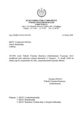 Yüksek Yönetim Denetçisi (Ombudsman) Temmuz-Aralık 2008 XV. Dönemi Raporu