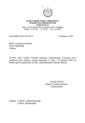 Yüksek Yönetim Denetçisi (Ombudsman) Temmuz-Aralık 2009 XVII. Dönemi Raporu
