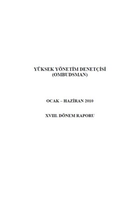 Yüksek Yönetim Denetçisi (Ombudsman) Ocak-Haziran 2010 XVIII. Dönemi Raporu
