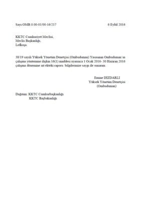 Yüksek Yönetim Denetçisi (Ombudsman) Temmuz-Aralık 2016 XXIV. Dönemi Raporu