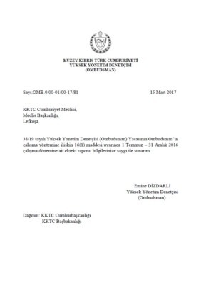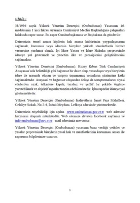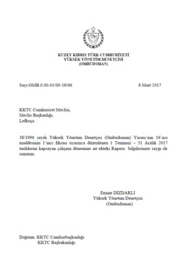 Yüksek Yönetim Denetçisi (Ombudsman) Temmuz-Aralık 2017 XXVI. Dönemi Raporu