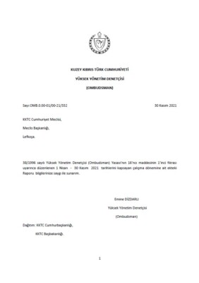 Yüksek Yönetim Denetçisi (Ombudsman) Nisan-Kasım 2021 XXXIII. Dönem Raporu
