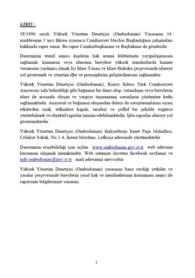 Yüksek Yönetim Denetçisi (Ombudsman)’nın Ocak-Haziran 1998 Raporu