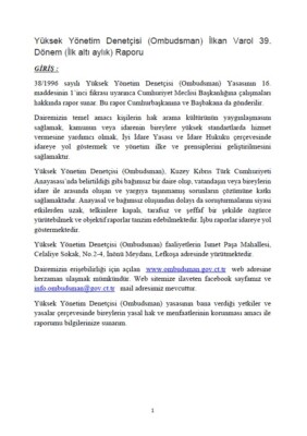 Yüksek Yönetim Denetçisi (Ombudsman)’ın Ocak-Haziran 1999 Raporu