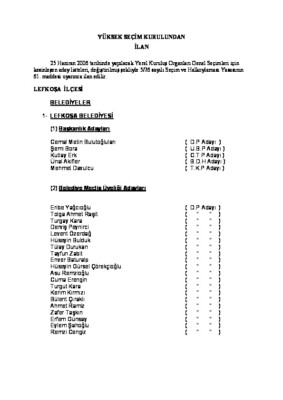 Yüksek Seçim Kurulundan ilan: Lefkoşa ilçesi