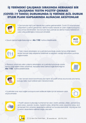 İş yerindeki çalışması sırasında herhangi bir çalışanda testin pozitif çıkması (COVID-19 tanısı) durumunda iş yerinde acil durum eylem planı kapsamında alınacak aksiyonlar