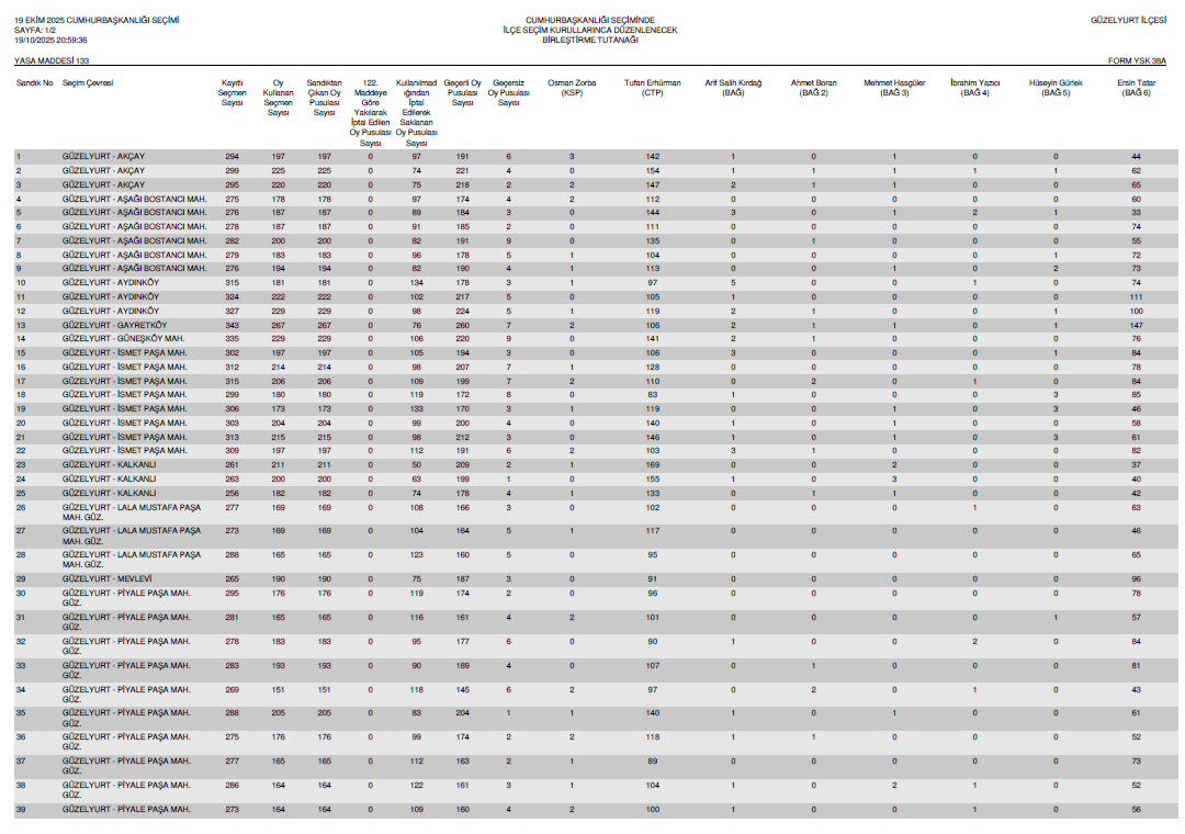 | Yayın Adı | 19 Ekim 2025 Cumhurbaşkanlığı seçimi: Cumhurbaşkanlığı seçiminde ilçe seçim kurullarınca düzenlenecek birleştirme tutanağı (Güzelyurt ilçesi) |