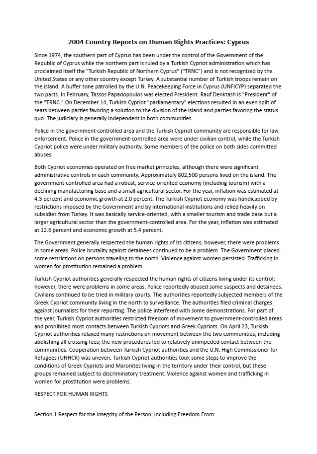 | Yayın Adı | 2003 Country Reports on Human Rights Practices: Cyprus |