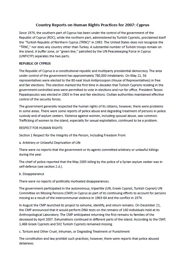 | Yayın Adı | 2006 Country Reports on Human Rights Practices: Cyprus |