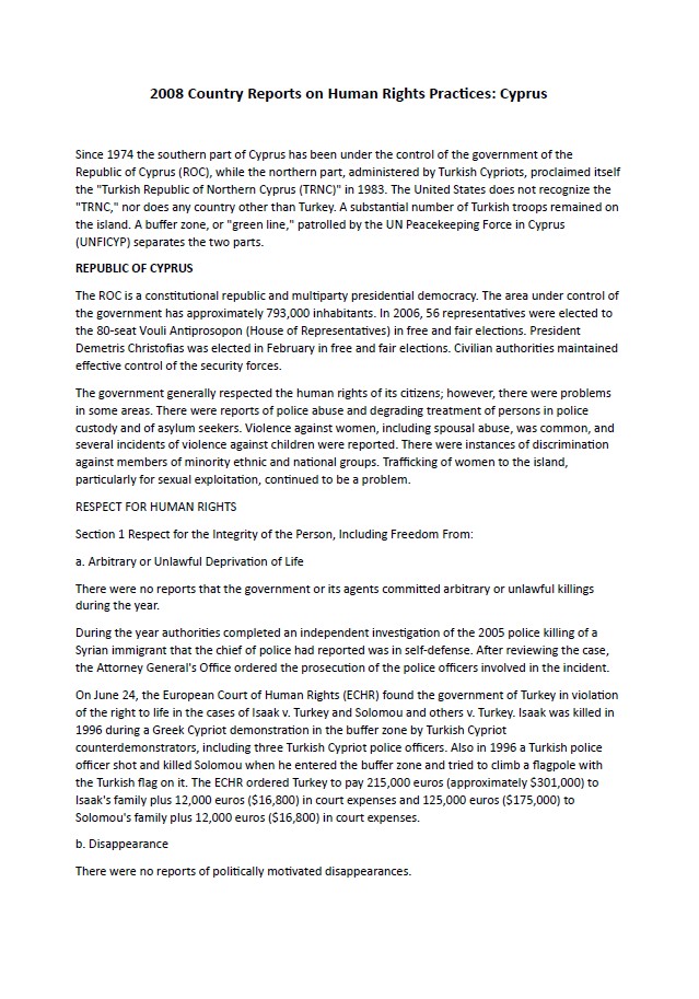 | Yayın Adı | 2008 Country Reports on Human Rights Practices: Cyprus |