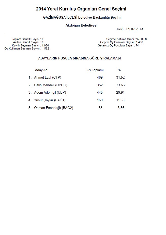 | Yayın Adı | 2014 yerel kuruluş organları genel seçimi: Gazimağusa ilçesi belediye başkanlığı seçimi |