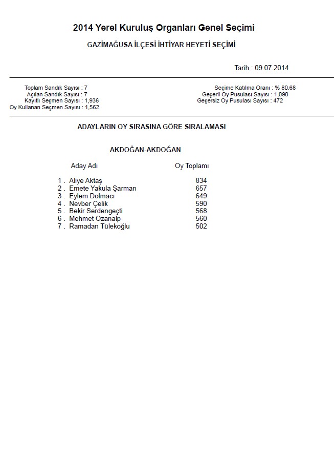 | Yayın Adı | 2014 yerel kuruluş organları genel seçimi: Gazimağusa ilçesi ihtiyar heyeti seçimi |