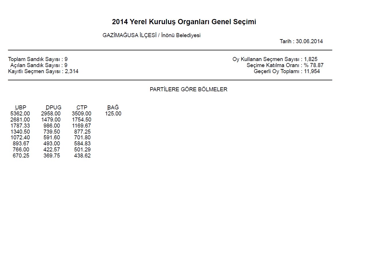 | Yayın Adı | 2014 yerel kuruluş organları genel seçimi: Gazimağusa ilçesi/İnönü Belediyesi |
