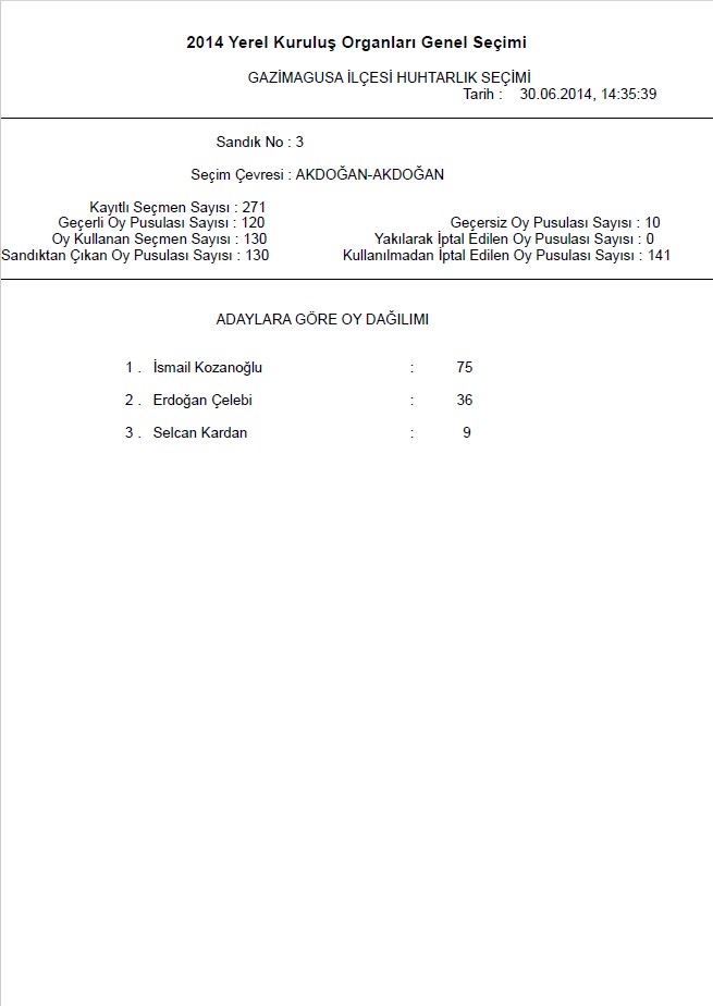 | Yayın Adı | 2014 yerel kuruluş organları genel seçimi: Gazimağusa ilçesi muhtarlık seçimi |