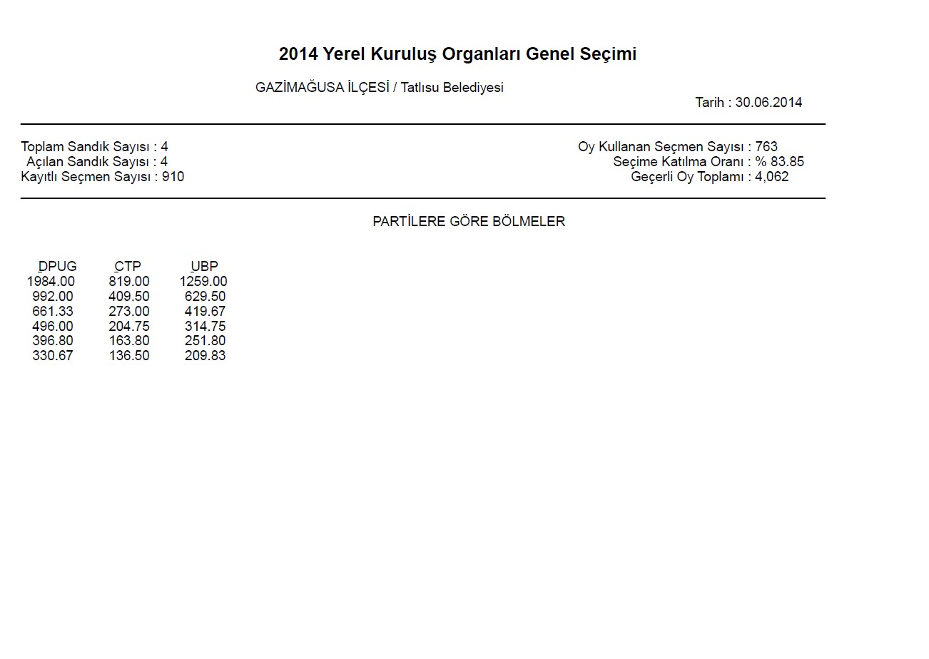 | Yayın Adı | 2014 yerel kuruluş organları genel seçimi: Gazimağusa ilçesi/Tatlısu Belediyesi |