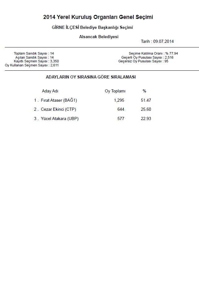 | Yayın Adı | 2014 yerel kuruluş organları genel seçimi: Girne ilçesi belediye başkanlığı seçimi |