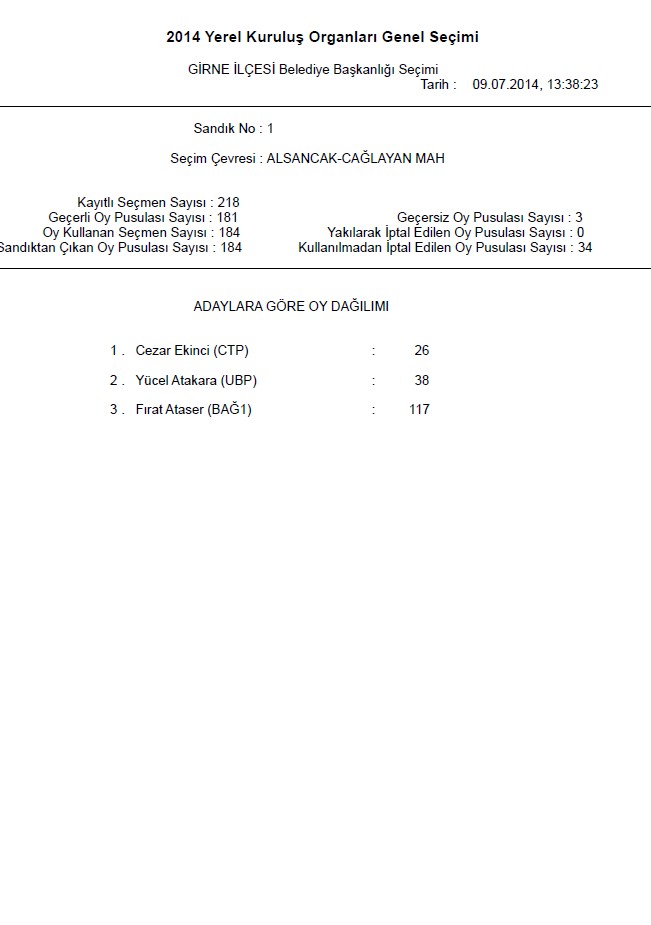 | Yayın Adı | 2014 yerel kuruluş organları genel seçimi: Girne ilçesi belediye başkanlığı seçimi |