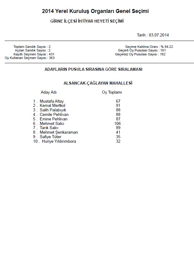 | Yayın Adı | 2014 yerel kuruluş organları genel seçimi: Girne ilçesi ihtiyar heyeti seçimi |