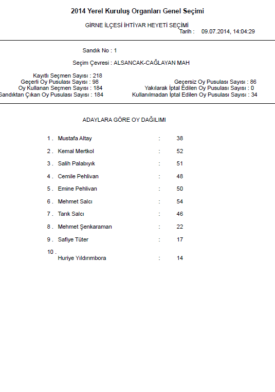 | Yayın Adı | 2014 yerel kuruluş organları genel seçimi: Girne ilçesi ihtiyar heyeti seçimi |