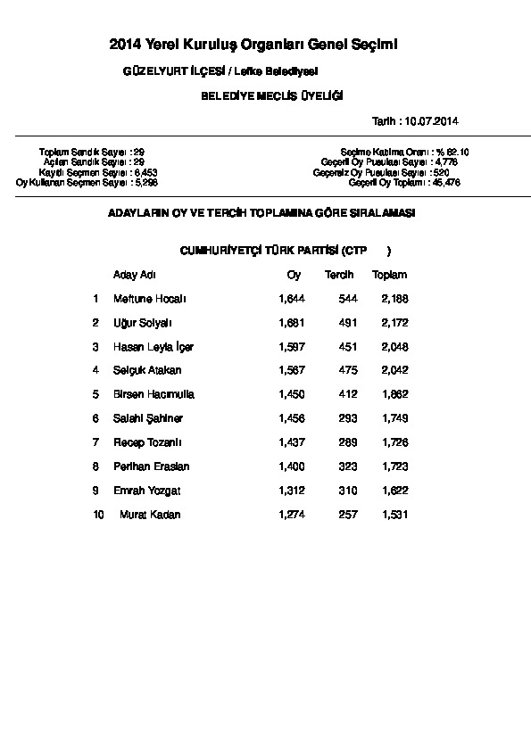 | Yayın Adı | 2014 yerel kuruluş organları genel seçimi: Güzelyurt ilçesi/Lefke Belediyesi (Belediye meclis üyeliği) |
