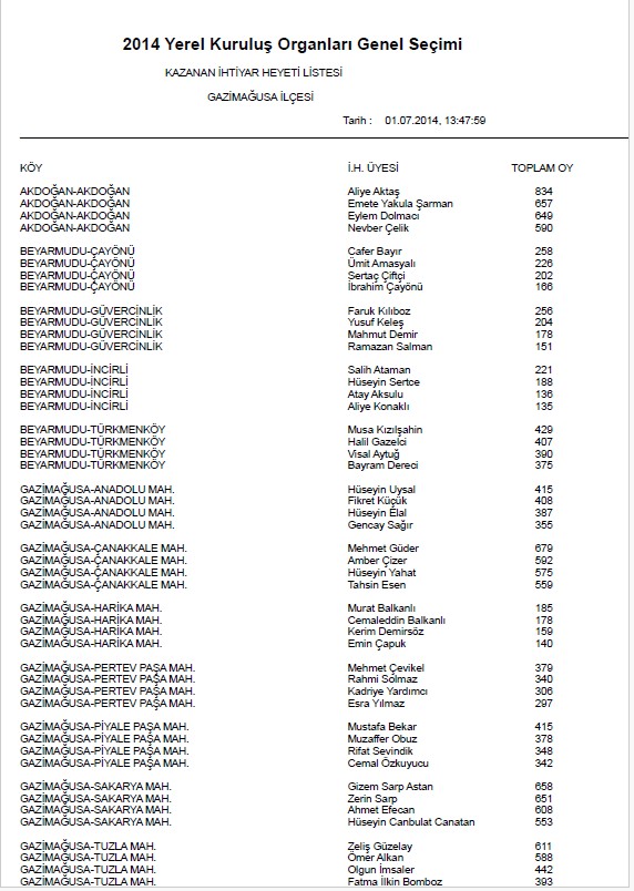 | Yayın Adı | 2014 yerel kuruluş organları genel seçimi: Kazanan ihtiyar heyeti listesi (Gazimağusa ilçesi) |