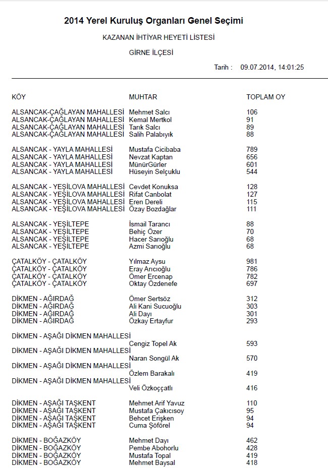 | Yayın Adı | 2014 yerel kuruluş organları genel seçimi: Kazanan ihtiyar heyeti listesi (Girne ilçesi) |