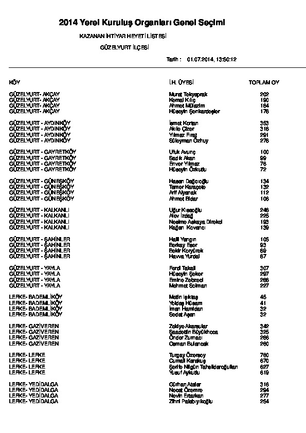 | Yayın Adı | 2014 yerel kuruluş organları genel seçimi: Kazanan ihtiyar heyeti listesi (Güzelyurt ilçesi) |