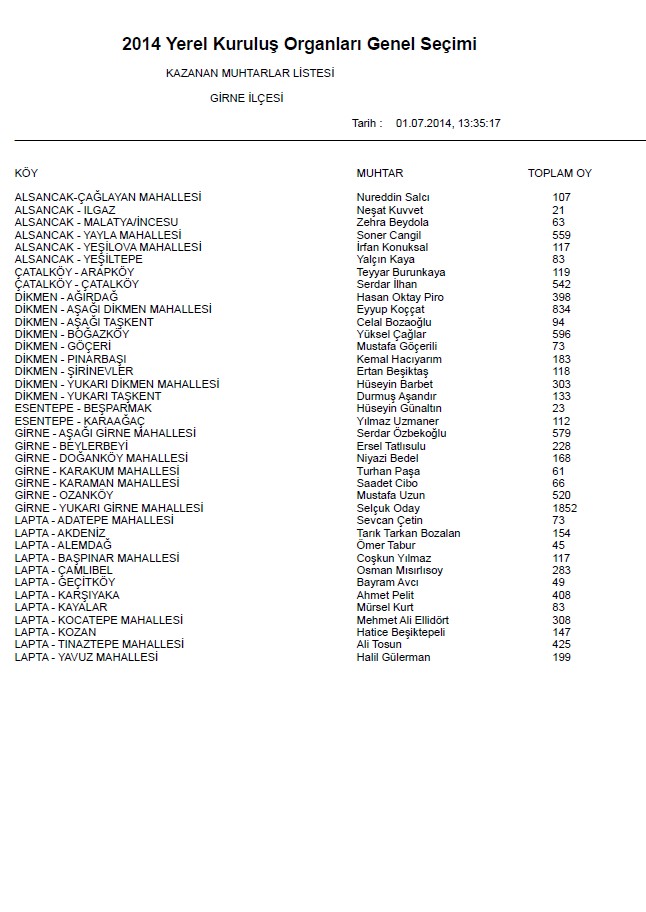 | Yayın Adı | 2014 yerel kuruluş organları genel seçimi: Kazanan muhtarlar listesi (Girne ilçesi) |