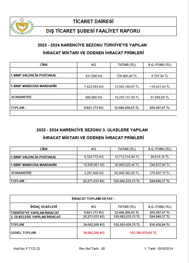 | Yayın Adı | 2023-2024 narenciye sezonu Türkiye'ye yapılan ihracat miktarı ve ödenen ihracat primleri |