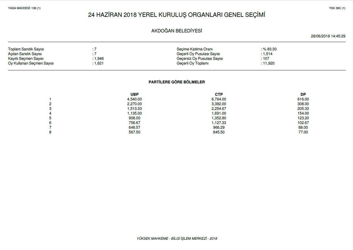 | Yayın Adı | 24 Haziran 2018 yerel kuruluş organları genel seçimi: Akdoğan Belediyesi |