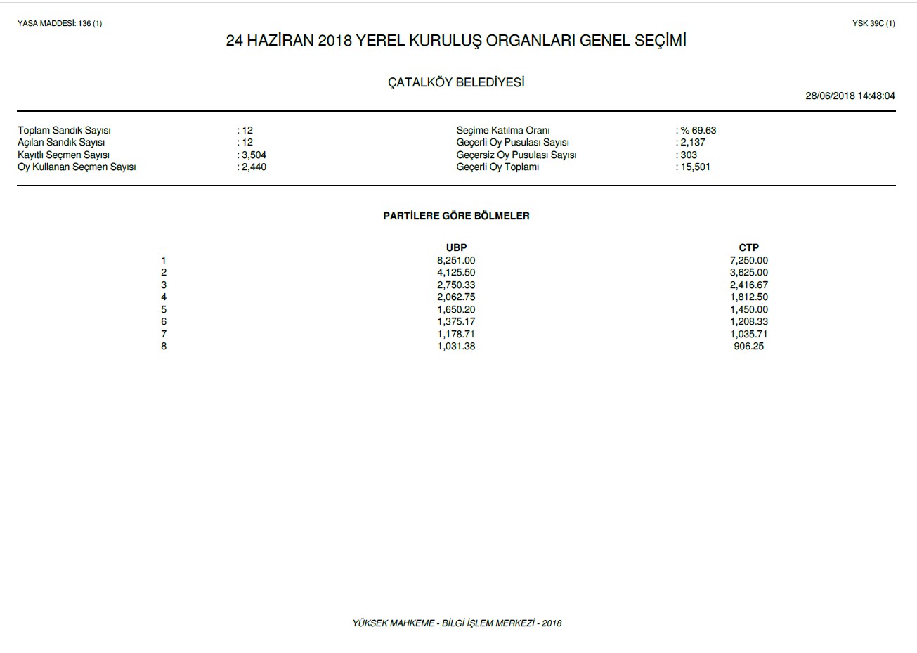 | Yayın Adı | 24 Haziran 2018 yerel kuruluş organları genel seçimi: Çatalköy Belediyesi |