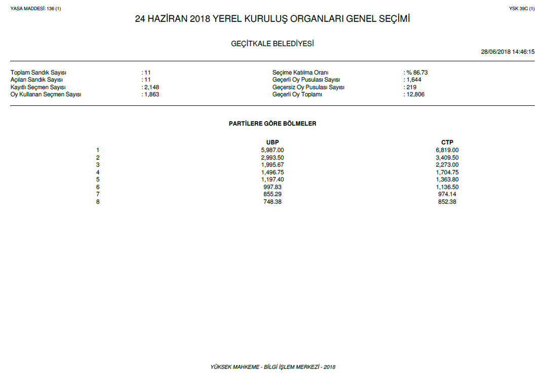 Yayın Adı24 Haziran 2018 yerel kuruluş organları genel seçimi: Geçitkale Belediyesi