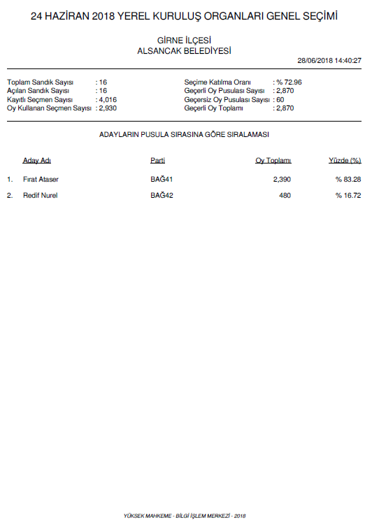 | Yayın Adı | 24 Haziran 2018 yerel kuruluş organları genel seçimi: Girne ilçesi |