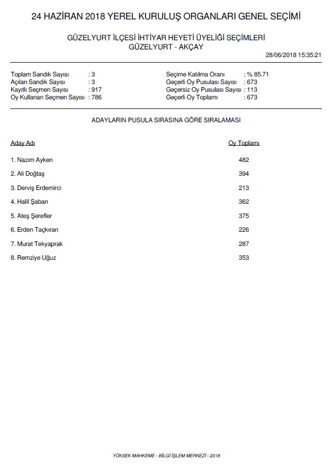 | Yayın Adı | 24 Haziran 2018 yerel kuruluş organları genel seçimi: Güzelyurt ilçesi ihtiyar heyeti üyeliği seçimi |